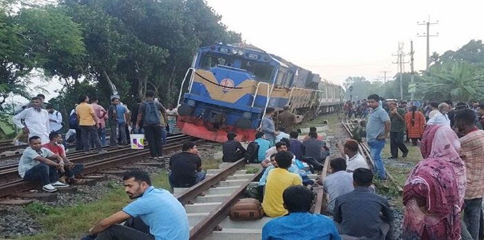 সোমবার (২৯ সেপ্টেম্বর) ভোর চারটার দিকে এ ঘটনা ঘটে। এতে কেউ হতাহত হয়নি বলে প্রাথমিকভাবে জানা গেছে।পাবনার ভাঙ্গুড়া উপজেলায় ঢাকা থেকে পঞ্চগড়গামী পঞ্চগড় এক্সপ্রেসের ৩টি বগি লাইনচ্যুত হয়েছে। ফলে ঢাকার